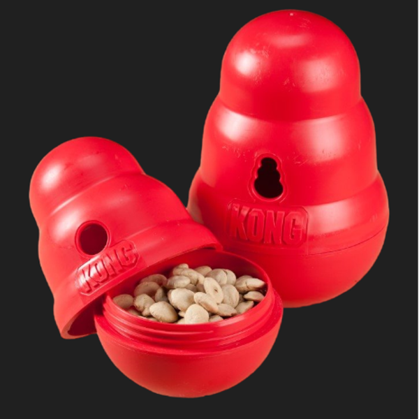 De Kong Wobbler is een snack dispenser die u kunt vullen met gezonde snacks of een heerlijke maaltijd brokken.