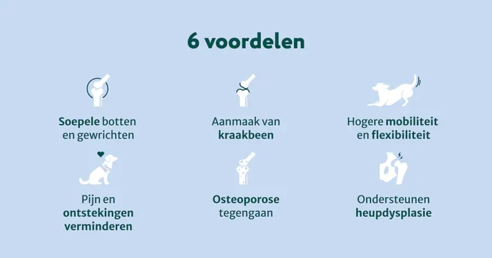 Deze unieke formule is speciaal ontworpen om de gewrichtsgezondheid te bevorderen, de mobiliteit bij uw hond te verbeteren en artrose te verlichten. Het biedt een effectieve ondersteuning voor honden van alle leeftijden.